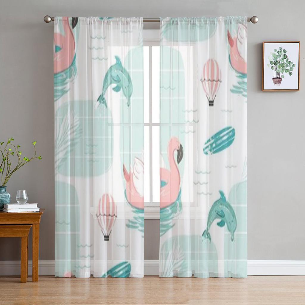 Abstract Cartoon Pink Flamingo Tulle Curtains For Living Room Sheer Curtain Bedroom Veil Organza Decorative Window Treatments