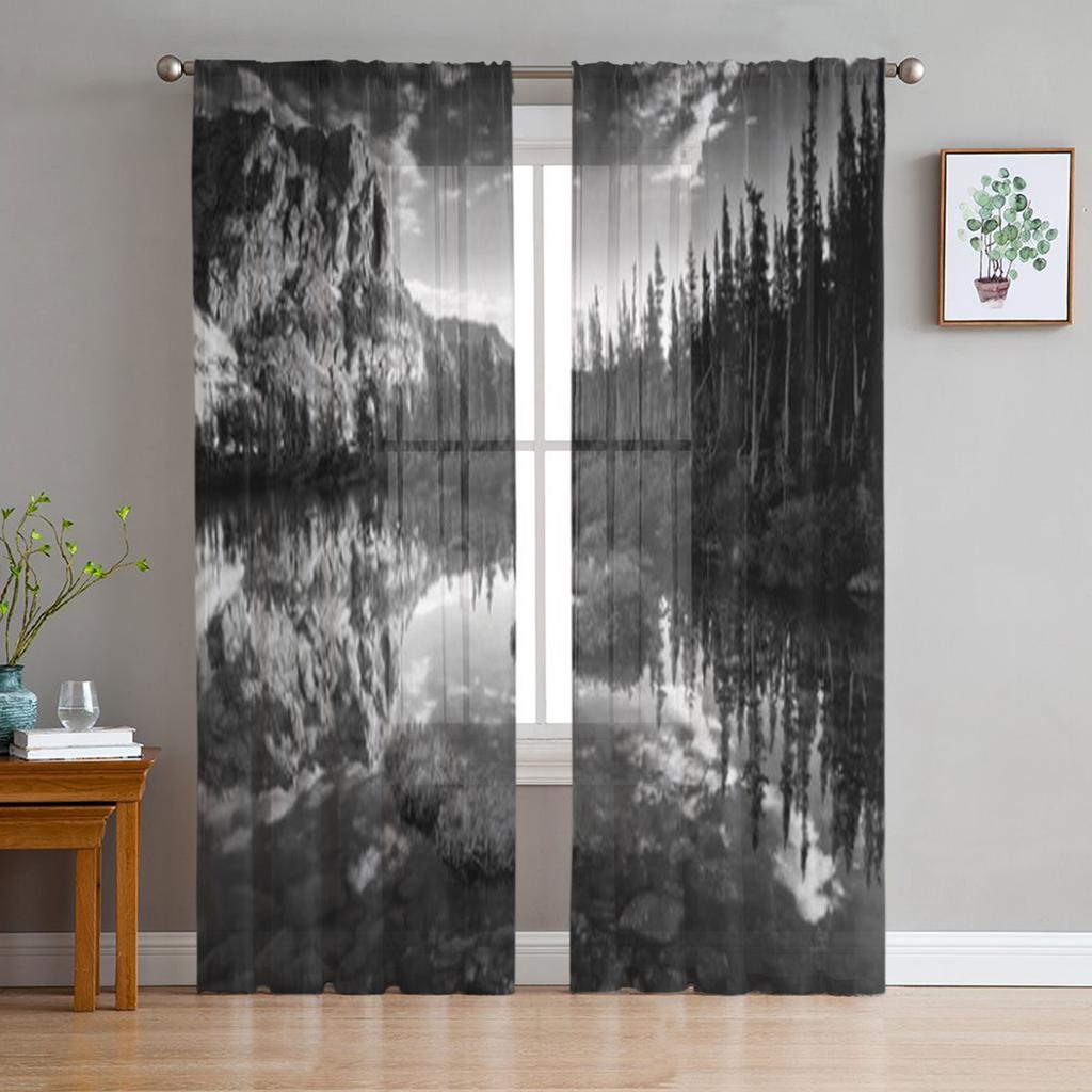 Soluppgång från Helene-sjön Lyxig chiffong, skira gardiner för vardagsrummet, dekoration av sovrummet Fönster Voiles Tyllgardin