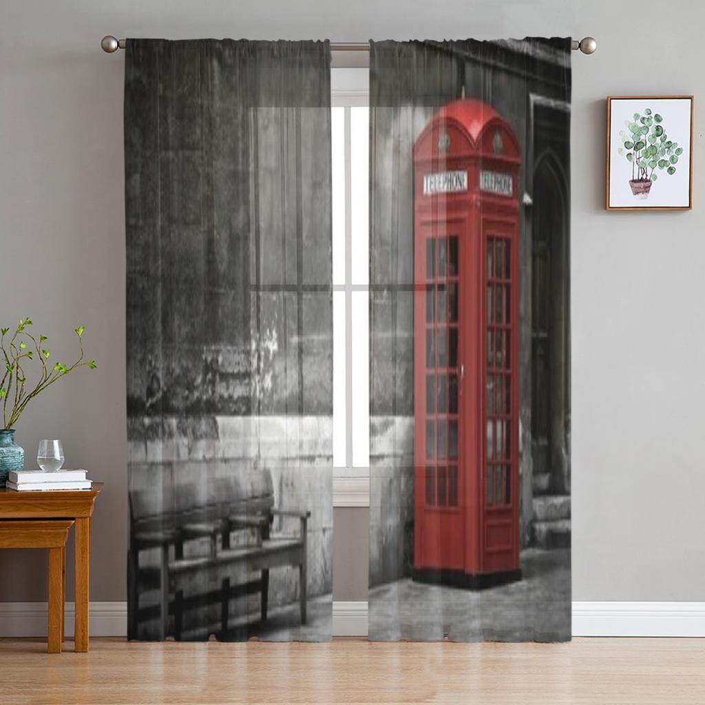 Brittisk telefonkiosk i London Storbritannien Tyll Skira gardiner för vardagsrum köksdekoration Voile Organza-gardiner