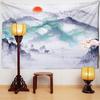 Japansk Kinesisk Sol Landskapsmålning Tapestry Kina Tusch Berg Träd Trädgård Pensel Vägghängning Röd Sol Tapestry Heminredning