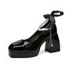 Stora Storlekar Högklackade Skor för Kvinnor Höst Pärlkedja Tjock Klack Mary Jane Skor Pumps Mode Platå Klänningsskor