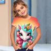 T-shirt T-shirt Enhörning tecknad 3D för flickor Kortärmad 3D-tryck Sommar Vår Aktivt Mode Söt Polyester Barn 3-12 år Utomhus