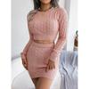 Ledig flätad navelfri tröja höfttäckande kjol stickad kostym