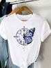 Women T-shirt Summer Short Sleeves Print Clothes Graphic T Shirt Feather Painting Bird Clothing Fashion Female Tops