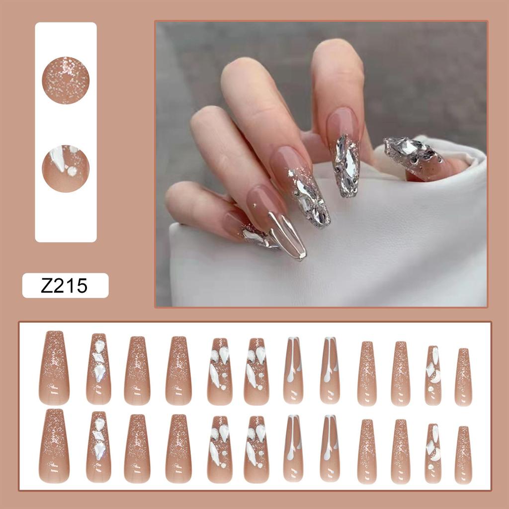Artificial Nails Wearable False Nails Nude Color Diamond Long Shiny Nail Pieces Removable