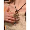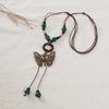 Etnisk stil keramik lång tröjkedja, handgjort vävt hänge för kvinnor, fjärilshalsband i konstnärlig stil