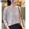 V-ringad Pullovertröja Dragsko Design Tunnstickad Tröja Kort Topp Blandad Färg Lös Ytterplagg Vår och Höst