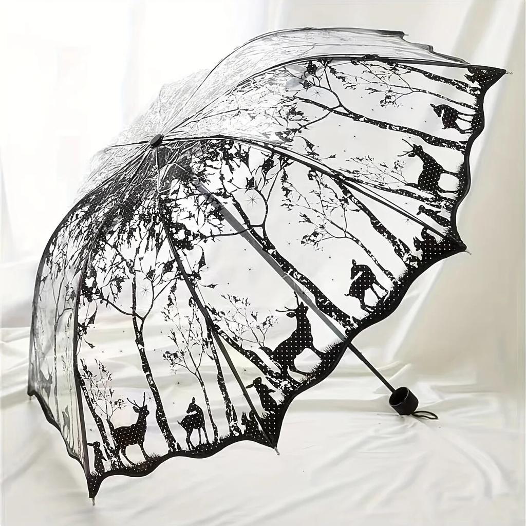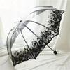 New Wave Edge Retro Transparent Paraply PVC Trevikbart Bågformad Fjäril Ros Paraply