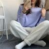 Mjuk stil på hösten och vintern Lösstickad tröja med lång ärm Damtröja Damstil Enfärgad tröja