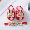 Material:bomullstyg av hög kvalitet med söt blomdekoration och tryck med blomsterbroderi, para med ett sött pannband, halkfri mjuk sula, skön och mjuk för små fötter.