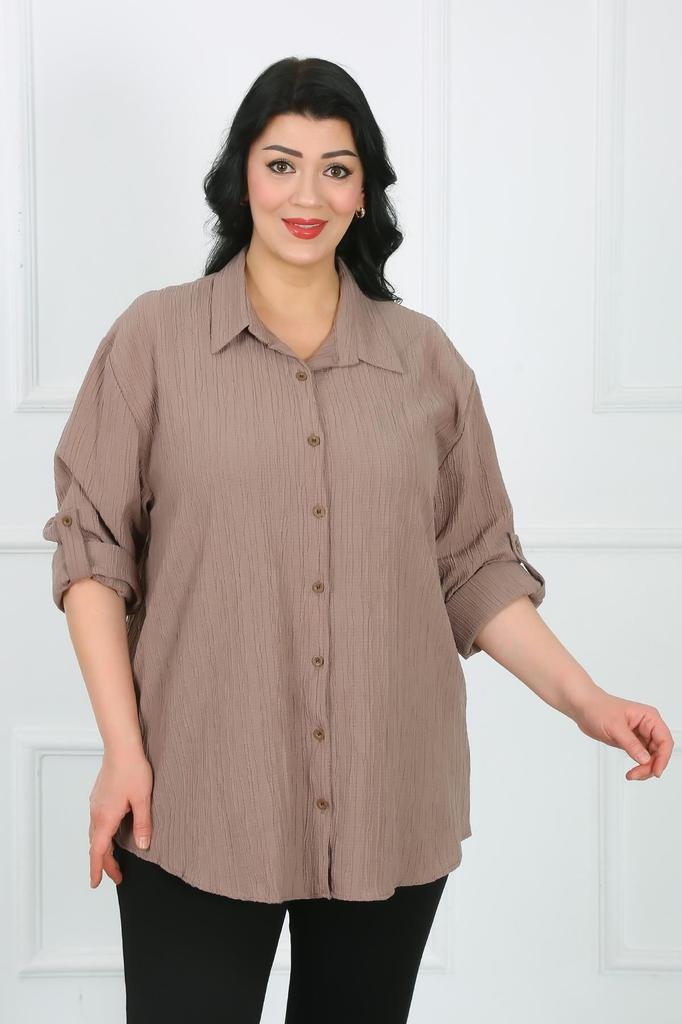 Women's Style Plus Size Shirt Stone Color Wrinkled Big Size Shirt