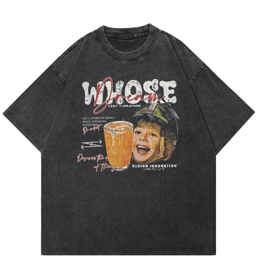 Streetwear härlig Pojke Grafisk Unisex T-shirt Bomull Tvättad Svart T-shirt Unisex Toppar T-shirts Sommar Kortärmad T-shirt