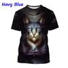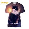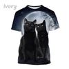 Herr- och Dammode T-shirt Djur Tecknad Katt Tryck Rund Hals Kortärmad Halloween Svart Katt 3D-tryck vardagstopp
