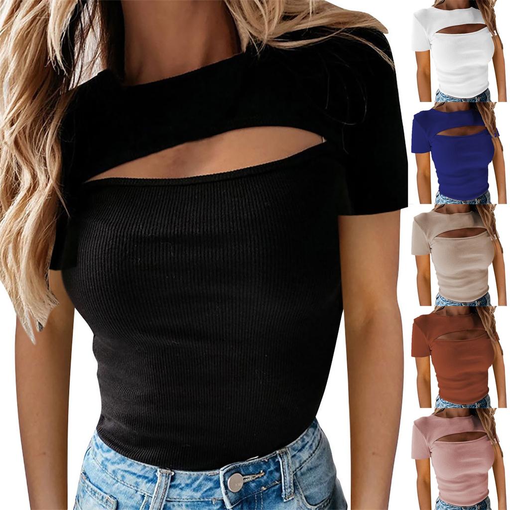 Dammode Casual Kortärmad Ihålig Enfärgad Slim Fit Toppar