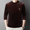 Vår och höst Herr Ung och medelålders Rund hals Guld sammet Broderad Mode Ledig Långärmad Tunn T-shirt Sweatshirt