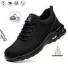 Herrarsäkerhetsskor Svarta Luftkudde Ståltå Sportskor Svarta Säkerhetsskor För Män Anti-Kross Vadderade Industriskor