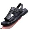 Kohudssandaler för män utomhus tofflor med öppen tå Casual läder Mjuksulor Halkfria strandskor
