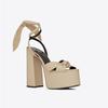 Nya Tryck Dam Sandaler Hög Platå Klumpiga Klackar Skor Sommar Peep Toe Ankelrem Höga Klackar Festskor Sandalia