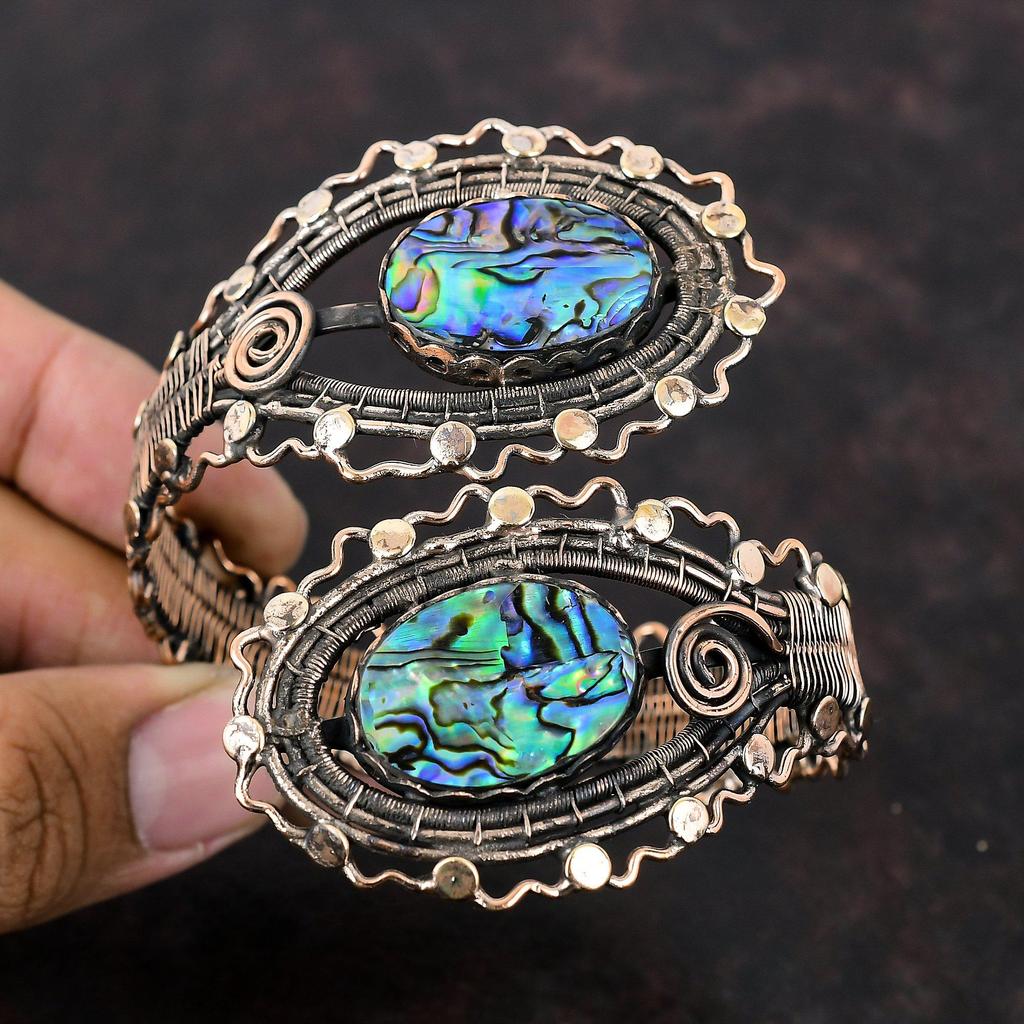 Abalone Shell Bangle Copper Wire Wrapped Cuff Bracelet Very Pretty Gemstone Bangle Handmade Adjustable Cuff Bracelet Copper Jewelry For Gift