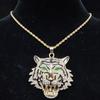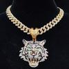 Hip Hop 3D Tiger Hängsmycke Halsband med 13 mm Kristall kubansk kedja HipHop Iced Out Bling Halsband Män Kvinnor Mode Charm Smycken