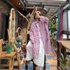 Johnature Women Vintage Long Shirts Stand Long Sleeve Button Patchwork Pockets Spring Chinese Style Blouses