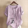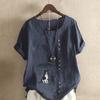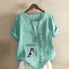 Women's Fashion Round Neck Short Sleeve T-shirt Casual Cotton Linen Graphic Shirt Leisure Loose Lovely dog Prined Summer Blouse Tops