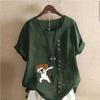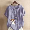 Women's Fashion Round Neck Short Sleeve T-shirt Casual Cotton Linen Graphic Shirt Lovely Dog Prined Summer Blouse Tops Plus Size