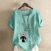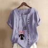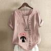 Women's Fashion Love Dog Prined Round Neck Short Sleeve T-shirt Casual Cotton Linen Graphic Shirt Leisure Loose Summer Blouse Tops