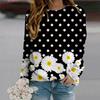 Höst Höst Dammode O-hals Långärmad T-shirt Lös Kläder Svart Prickig Krysantemumtryck T-shirt För Flickor Gata