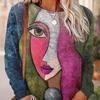 Toppar för kvinnor Vackert ansiktstryck Rund hals Långärmad T-shirt Höst Casual Slim Pullover Dam Långärmad Topp