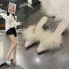 Hältofflor Damskor Dam Pumps Enfärgade Flock Spetsig Tå Slip on Päls Höga Klackar Sommar Damtofflor