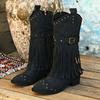 Kvinnors tofsdekor med tjocka klackstövlar, mode metallpärlor dekor med dragkedjestövlar på sidan, bekväma stövlar för kvinnor