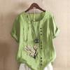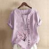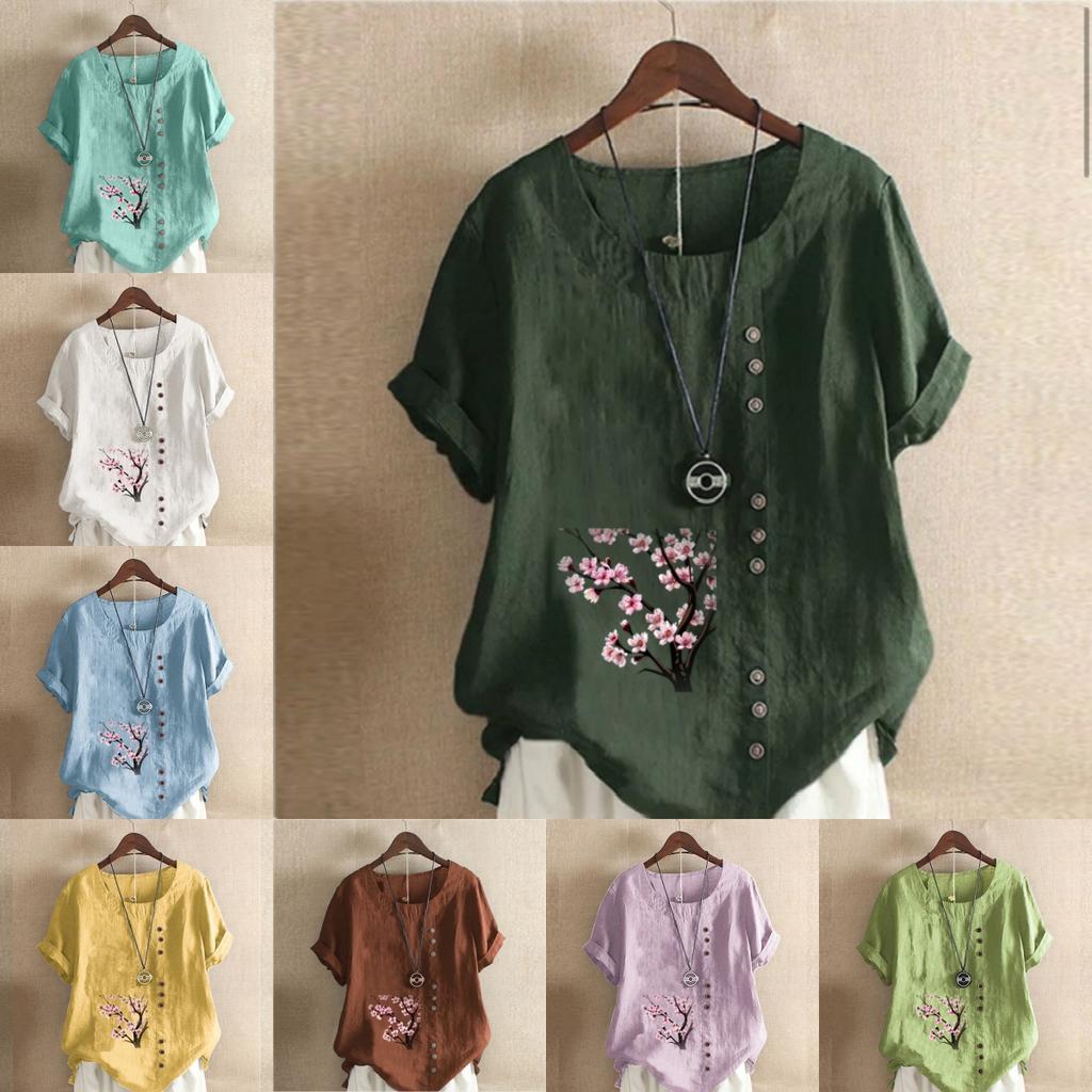 Dammode Rundhals Kortärmad T-shirt Casual Bomull Linne Grafisk Skjorta Fritid Lös Blommor Tryckt Sommarblus Toppar
