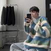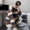 Randiga Tröjor Herr Lös O-hals Pullovrar Herrar Vinter Tjock Varm Mjuk Toppar Stickad Vintage Koreansk Stil Mode Stilfull