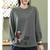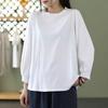 Bomulls T-shirt med nioärm för dam, vår och höst, koreansk stil, enfärgad, lös, plus size, rundhalsad topp