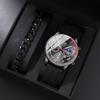 2PCS Set DEYROS Fashion Student Watch Business Men leather Strap Calendar Watch New Men Quartz Watch&Bracelet Men Gift