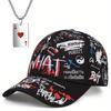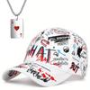 2pcs Men's Women's Baseball Cap Necklace Set Fashion Casual Duck Tongue Cap Playing Card Pendant Necklace Sports Sun Hat