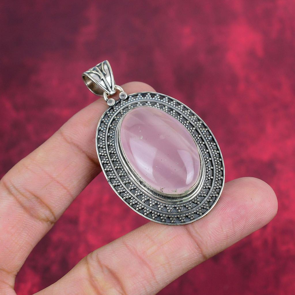 Rosenkvarts Hänge 925 Sterling Silver Hänge, Ädelstenssmycke Handgjort Kedjehänge, Fantastiskt Smyckesgåva Till Henne