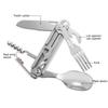 Utomhusfällbar porslin i rostfritt stål bärbar knivgaffel Campingbestick Sked Flasköppnare Utomhusverktygssats