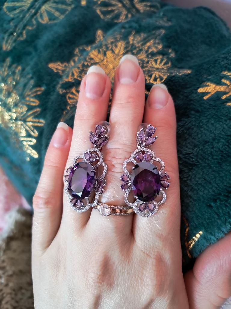 Utsökt ovalt skuren lila Cubic Zirconia Crystal Drop örhängen för kvinnor Mode Silver Färg Blomma Dingla Bröllopssmycken
