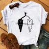 Katt&Noter Tryckt T-shirt Casual Rundhals Kortärmad Topp Sommar Andningsbar Damkläder Plus Size T-shirt