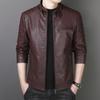 PU Leather Men's Slim Jacket Autumn and Winter Velvet Jacket Men's Casual Stand-up Collar Leather Jacket
