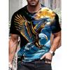 Grafisk 3D Eagle-tröja för män - fet bokstavstryck, ledig passform, kortärmad sommartröja - perfekt för utomhusbruk
