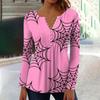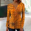 Dam Vår Höst Plisserad Knäppkrage Halloween Tryck Långärmad Topp