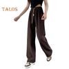 Women Pants Elastic High Waist Adjustable Drawstring Long Pants Solid Color Straight Wide Leg Casual Trousers Daily Wear