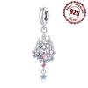 S925 Sterling Silver Pärla Blå Slott Hänge Berlock Passar Originalvarumärkesarmband DIY Armband Pärlförsett Romantiskt Gåva