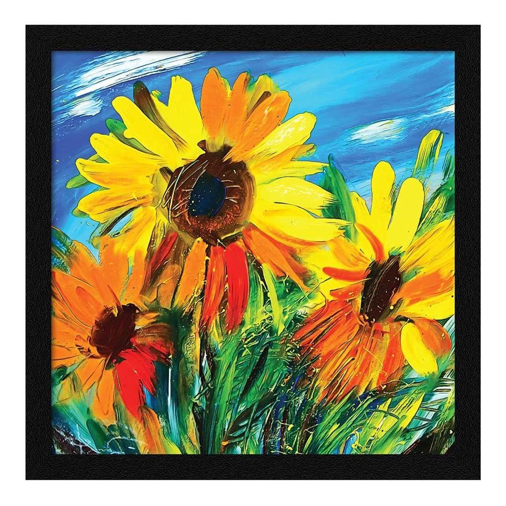 Paper Sunflower Wall Art Painting, Multicolor, Floral, 13X13 in, Set of 1