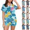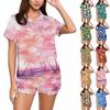 Dammode Silkespyjamas Knappar Hemmakläder Blomtryck Kortärmad Satin Pyjamasset 2-delat Set