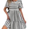YYFS Women's Fashion Summer Spring Stripe Print Short Sleeve O-Neck Middle Waistline Casual Dresses