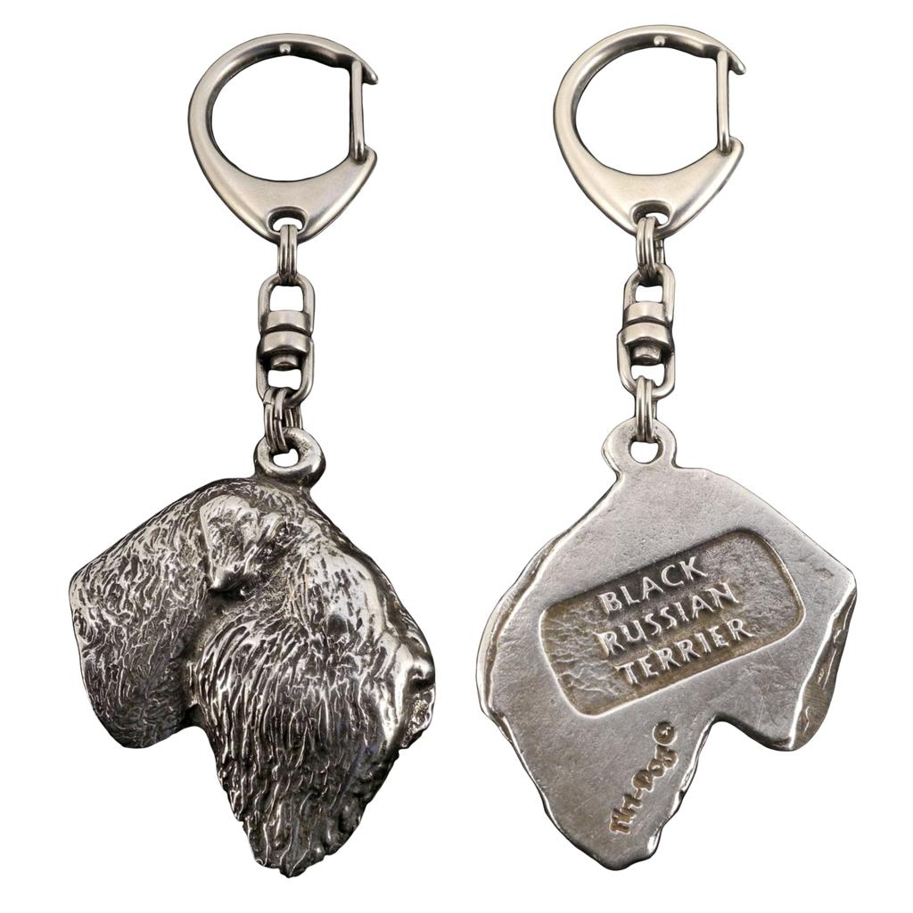 Black Russian Terrier, Chornyi Terrier - Silver-plated key ring with dog, handbag decoration, backpack pendant by Art-Dog brand